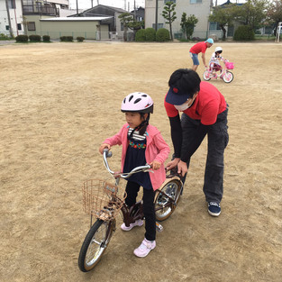広いグランドを、元気なお子さんたちは何度も練習で自転車をこいでいます。